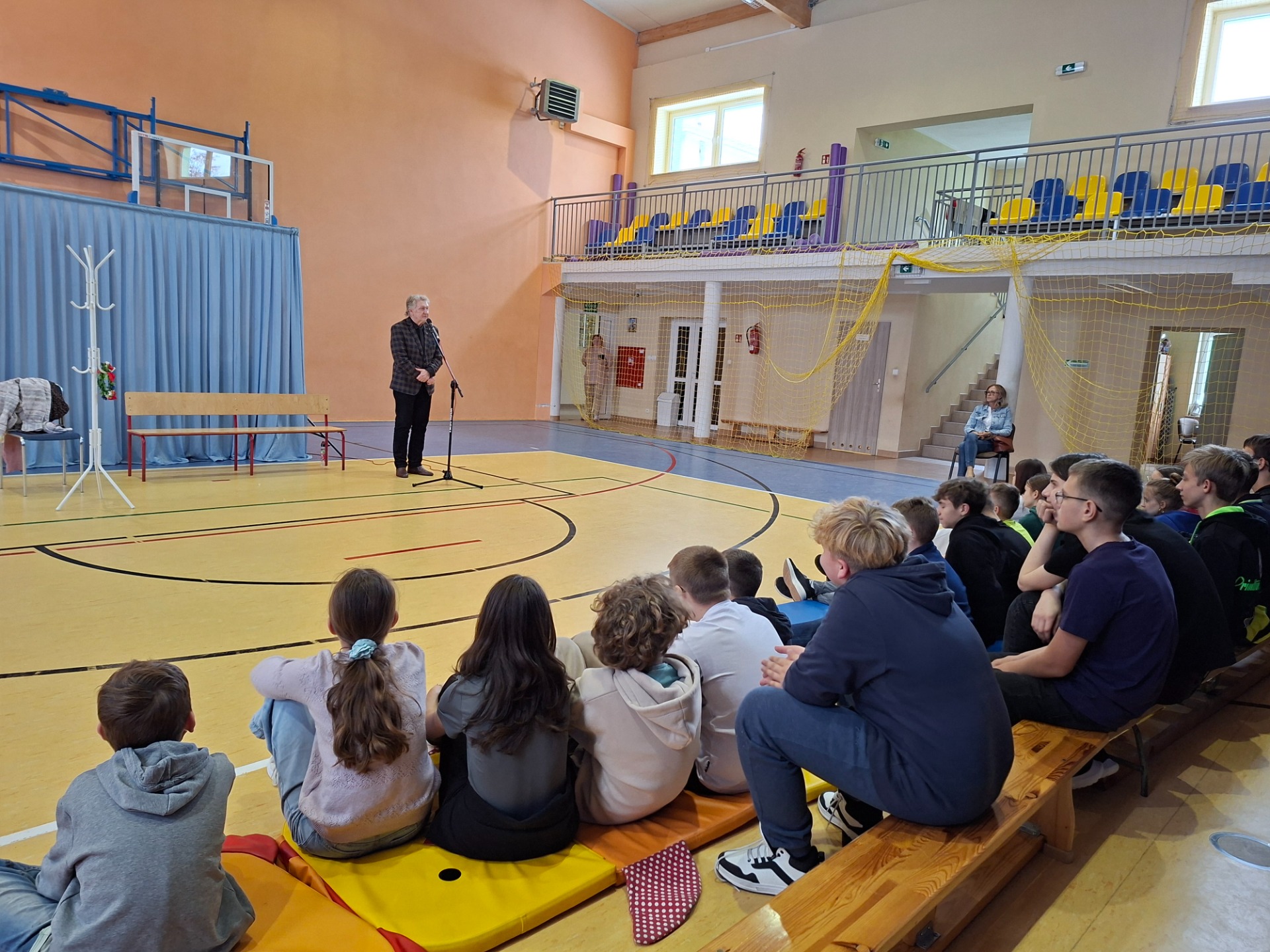 W dniu 27 listopada 2025 r. w Szkole Podstawowej w Koźlu odbyło się spotkanie profilaktyczne dla uczniów klas VI–VIII z udziałem Teatru „Zwierciadło”. Młodzież miała okazję obejrzeć spektakl pt. „W pogoni”, zrealizowany w ramach szkolnych działań profilaktycznych.