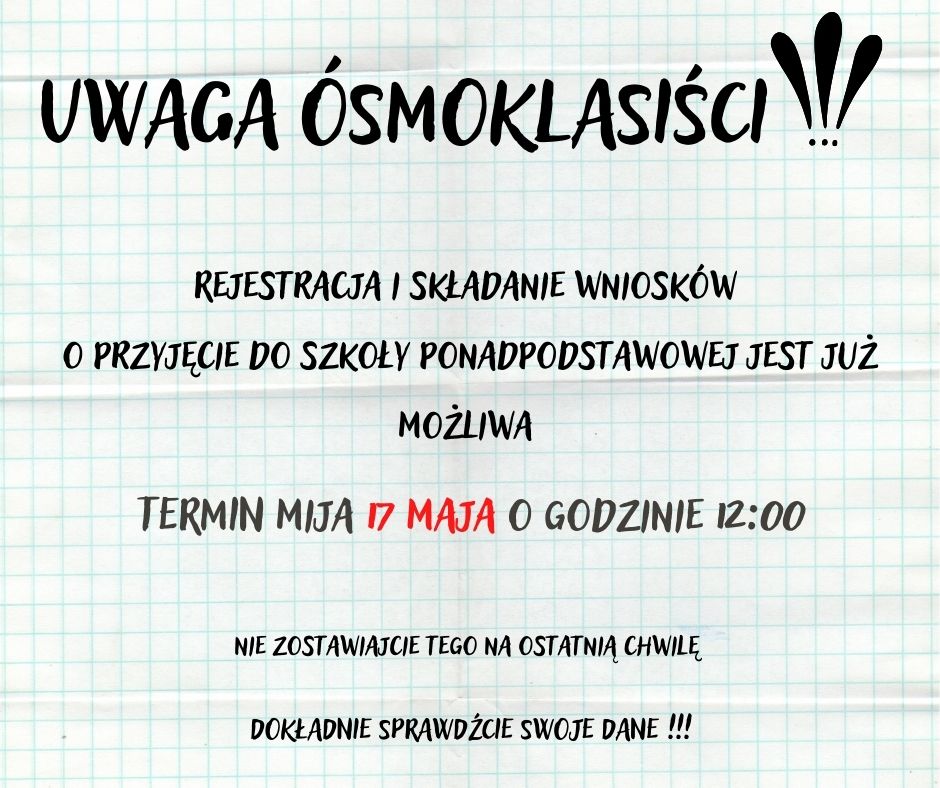 UWAGA ÓSMOKLASIŚCI!!!