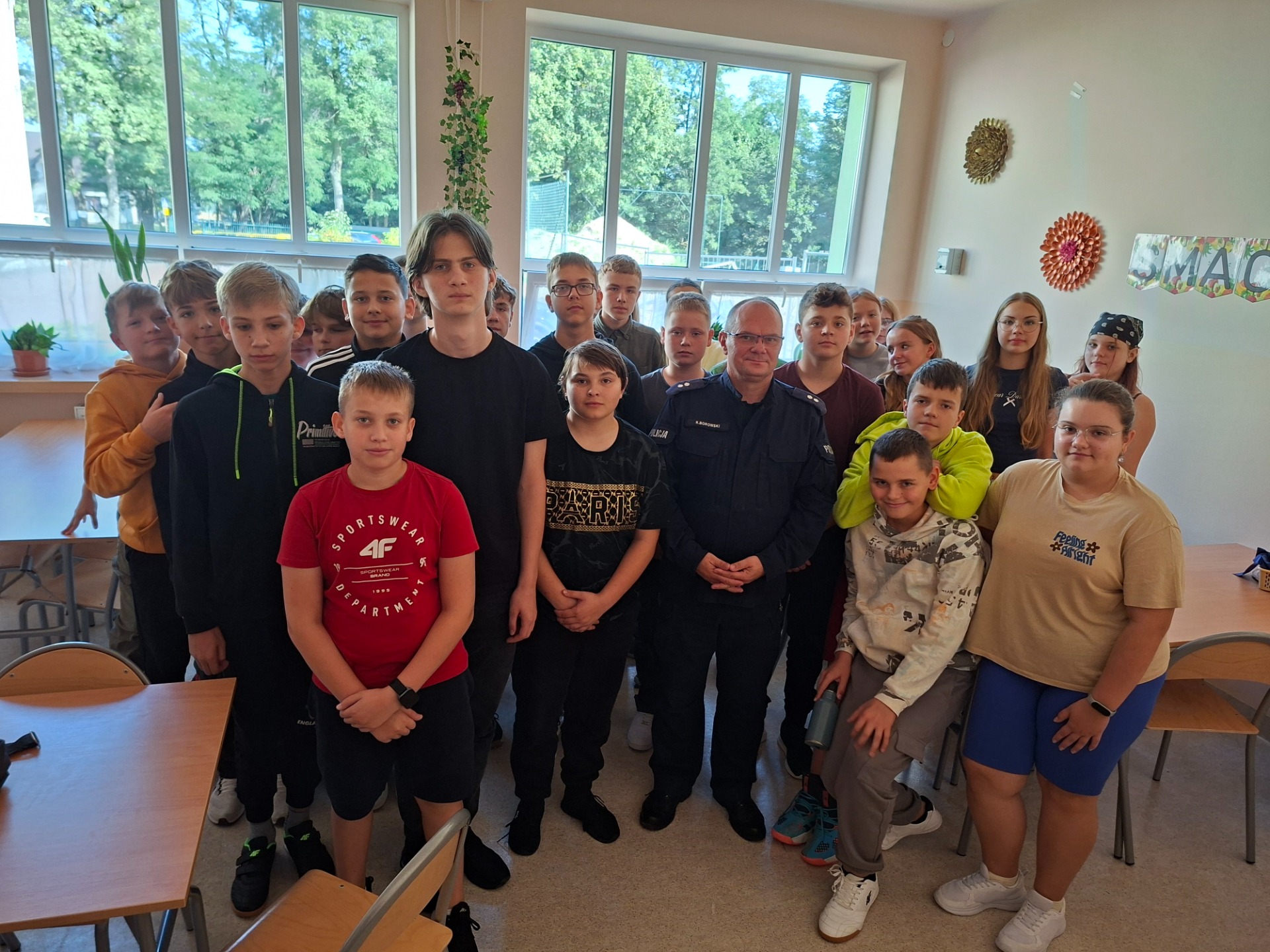 馃搮 10 wrze艣nia w naszej szkole odby艂y si臋 spotkania z profilaktykiem spo艂ecznym – podkom. Robertem Borowiakiem z Komendy Powiatowej Policji w Zgierzu. 馃殦