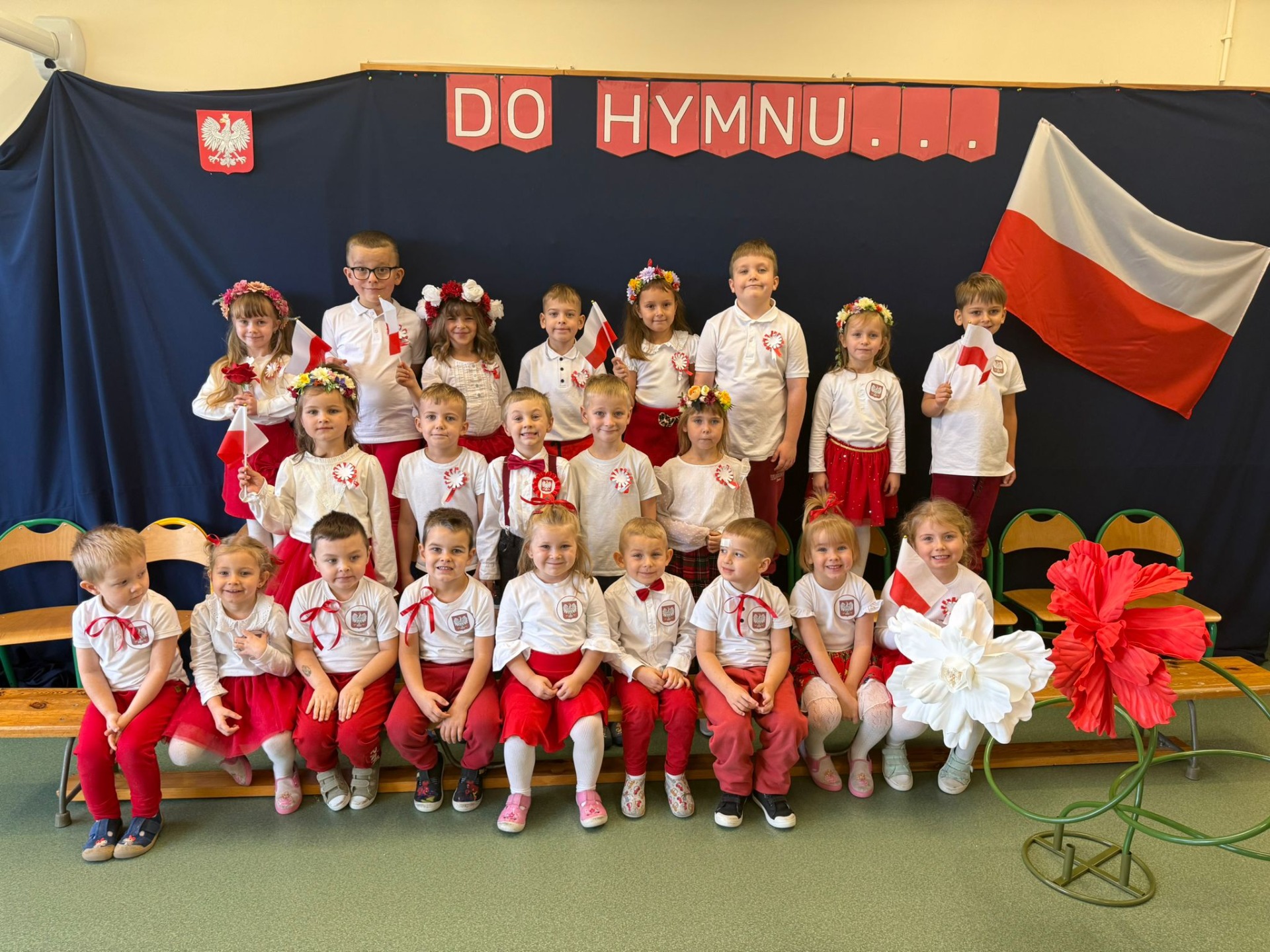 Z tej okazji dzieci, ubrane w patriotyczne stroje, odśpiewały Hymn Polski.
