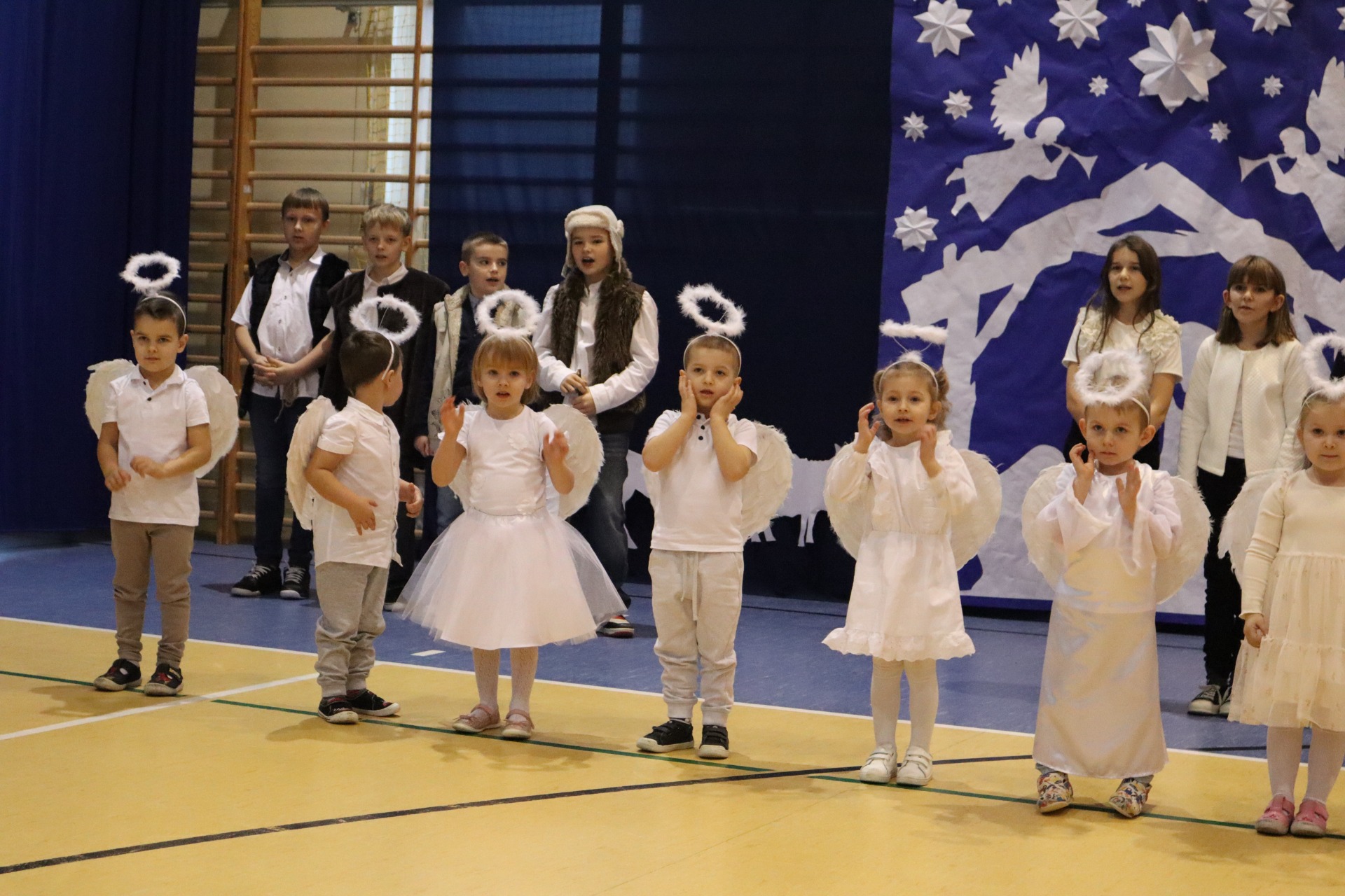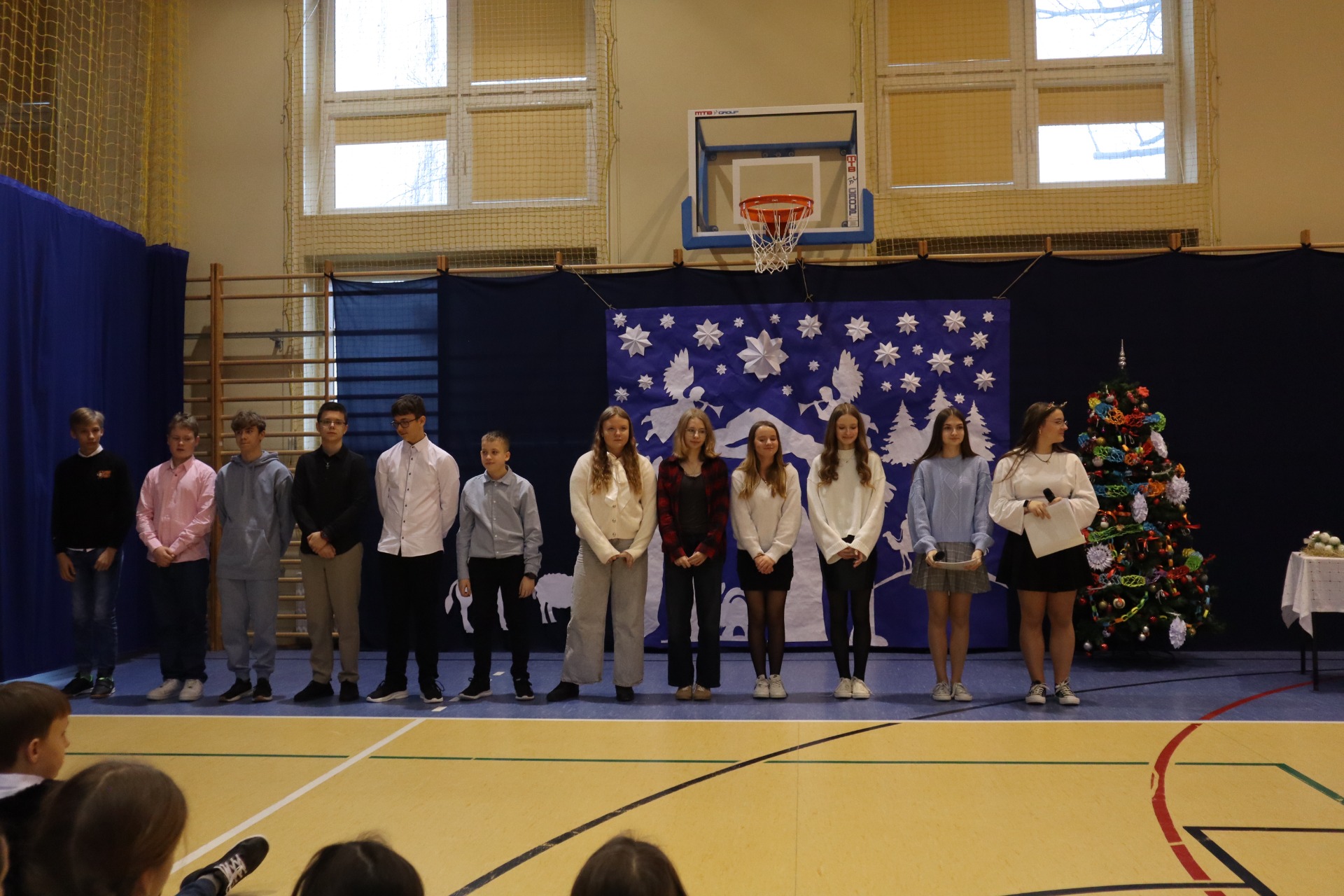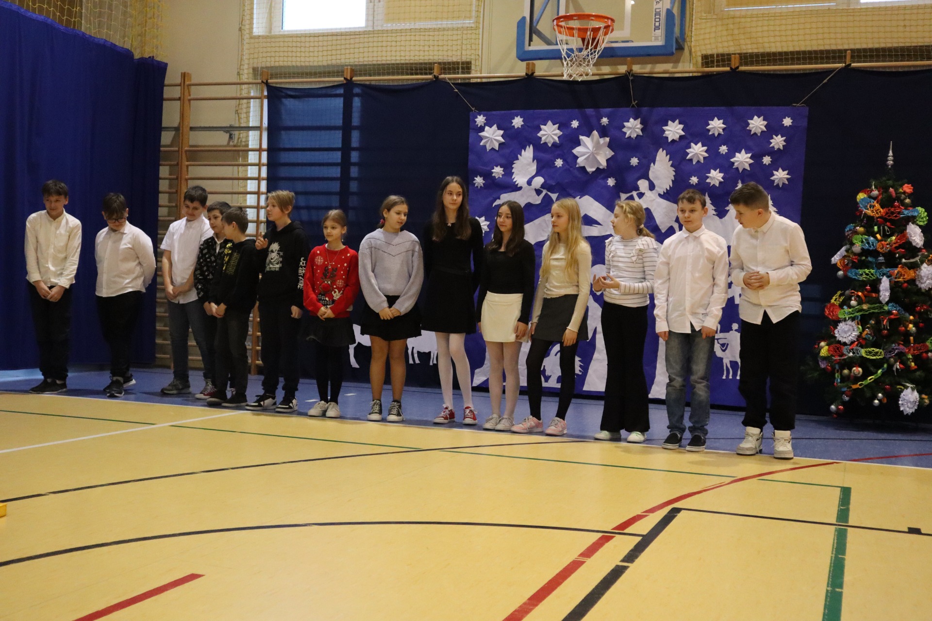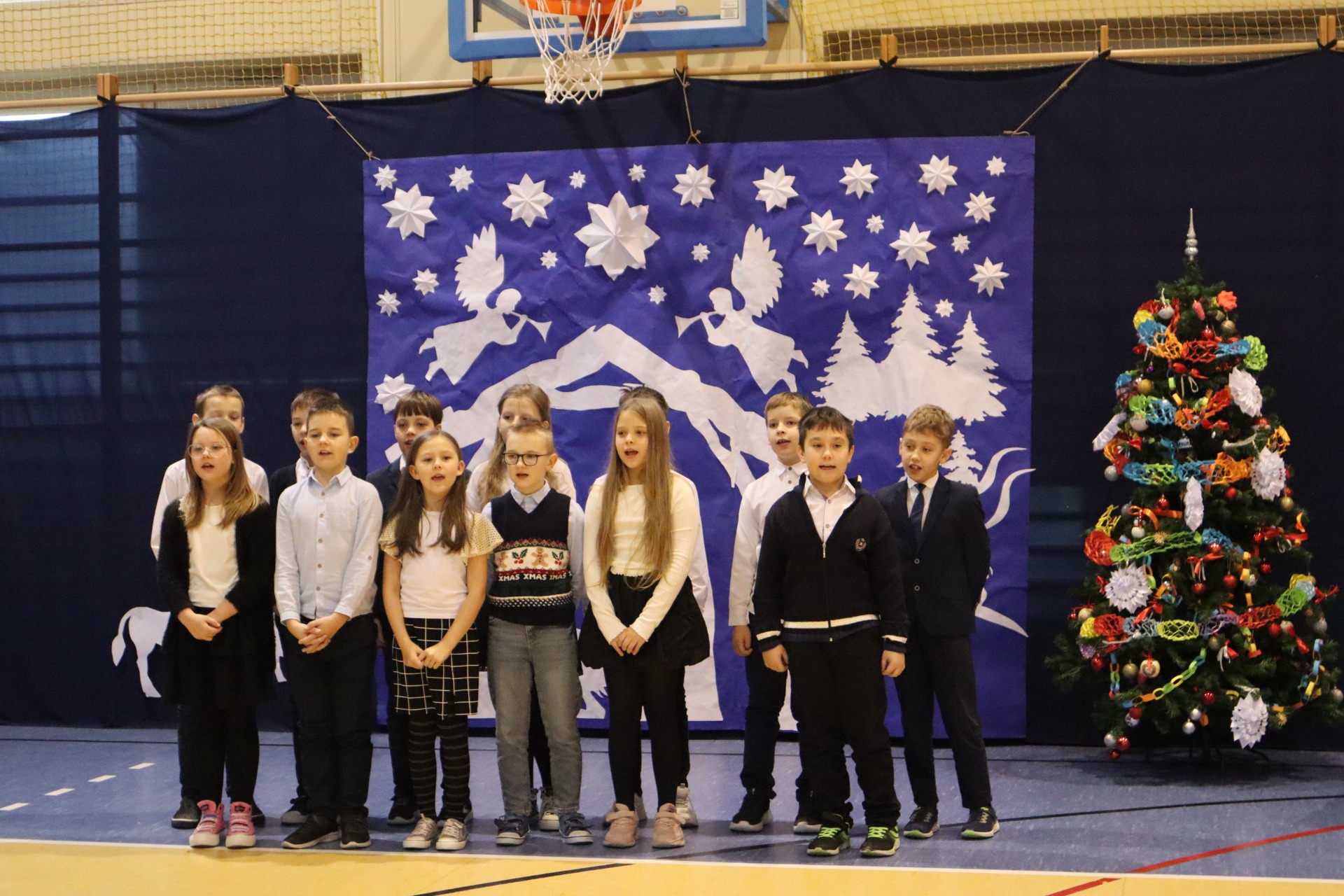 Z okazji madchodzącyhc Świąt Bożego Narodzenia w naszej szkole odbył się wyjątkowy koncert kolęd, który wprowadził wszystkich w świąteczny nastrój. Najmłodszych milusińskich spotkała dodatkowa niespodzianka - odwiedził ich sam Święty Mikołaj, wywołując wiele usmiechów i radości. To był dzień pelen ciepła, muzyki i światecznej atmosfery.