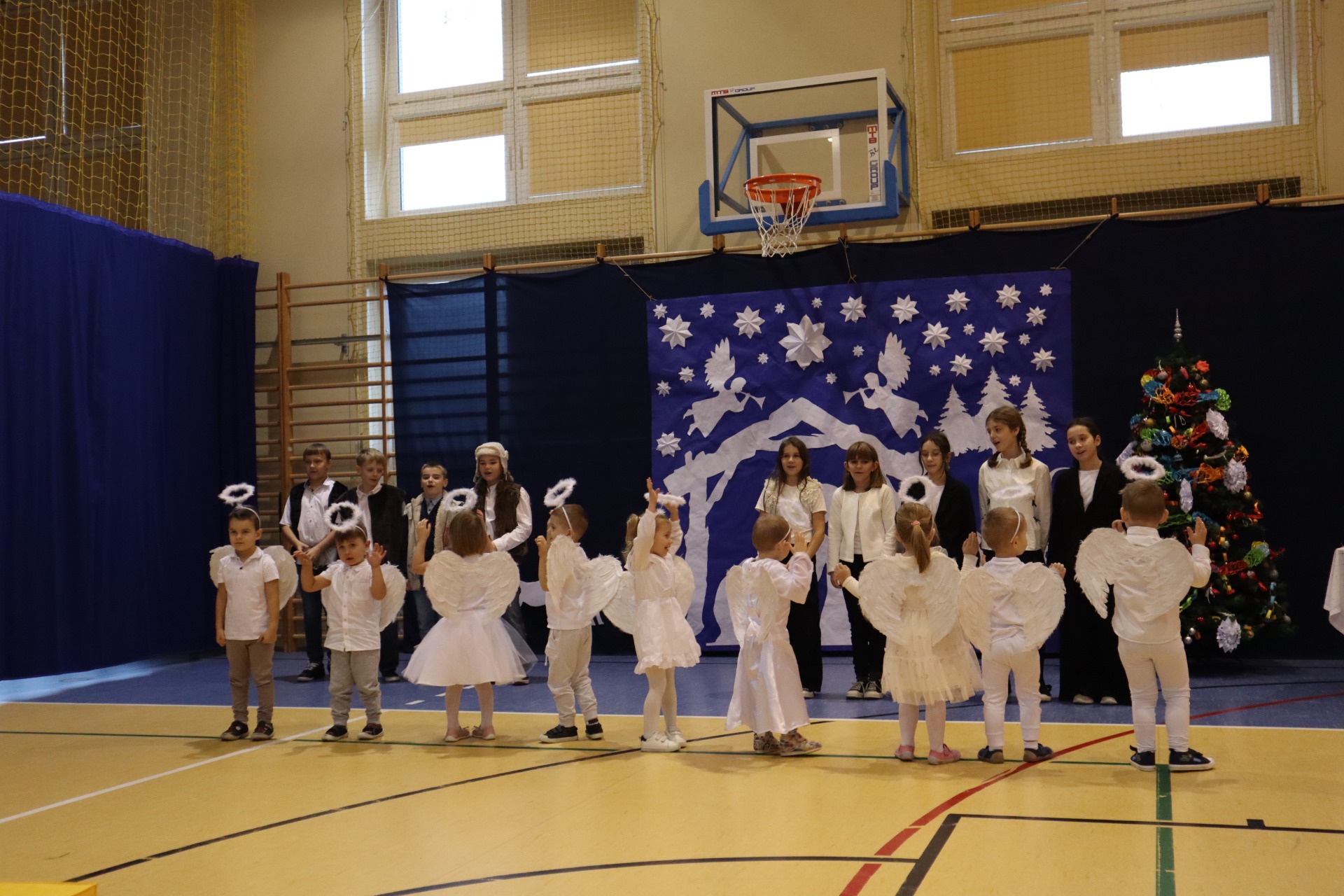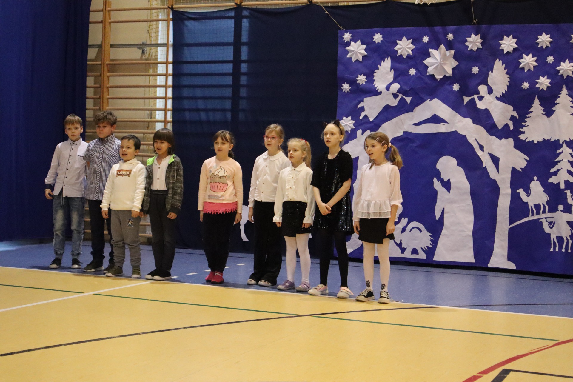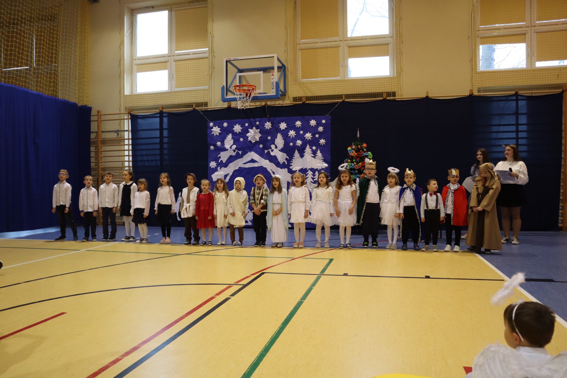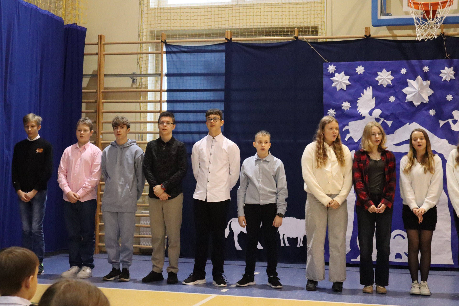 Z okazji madchodzącyhc Świąt Bożego Narodzenia w naszej szkole odbył się wyjątkowy koncert kolęd, który wprowadził wszystkich w świąteczny nastrój. Najmłodszych milusińskich spotkała dodatkowa niespodzianka - odwiedził ich sam Święty Mikołaj, wywołując wiele usmiechów i radości. To był dzień pelen ciepła, muzyki i światecznej atmosfery.