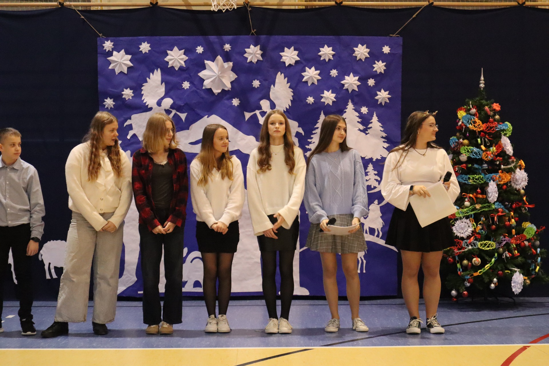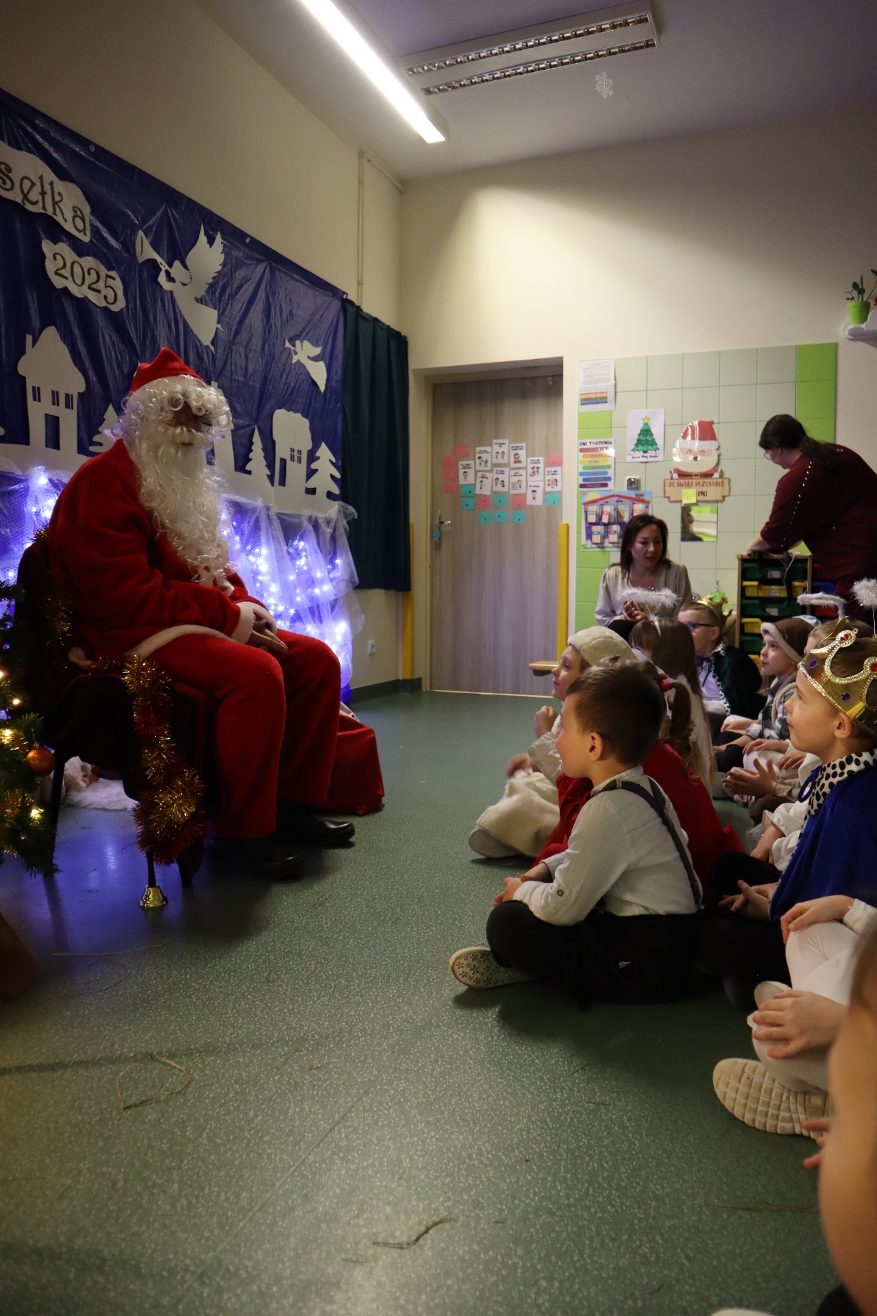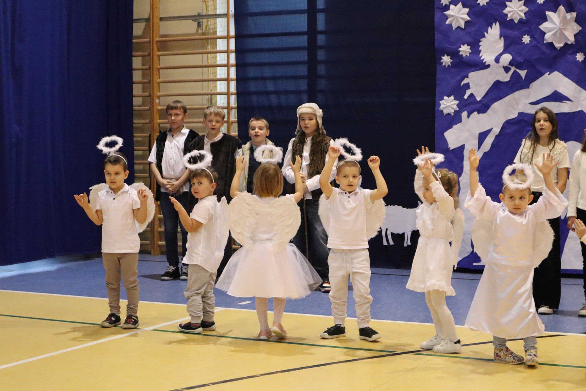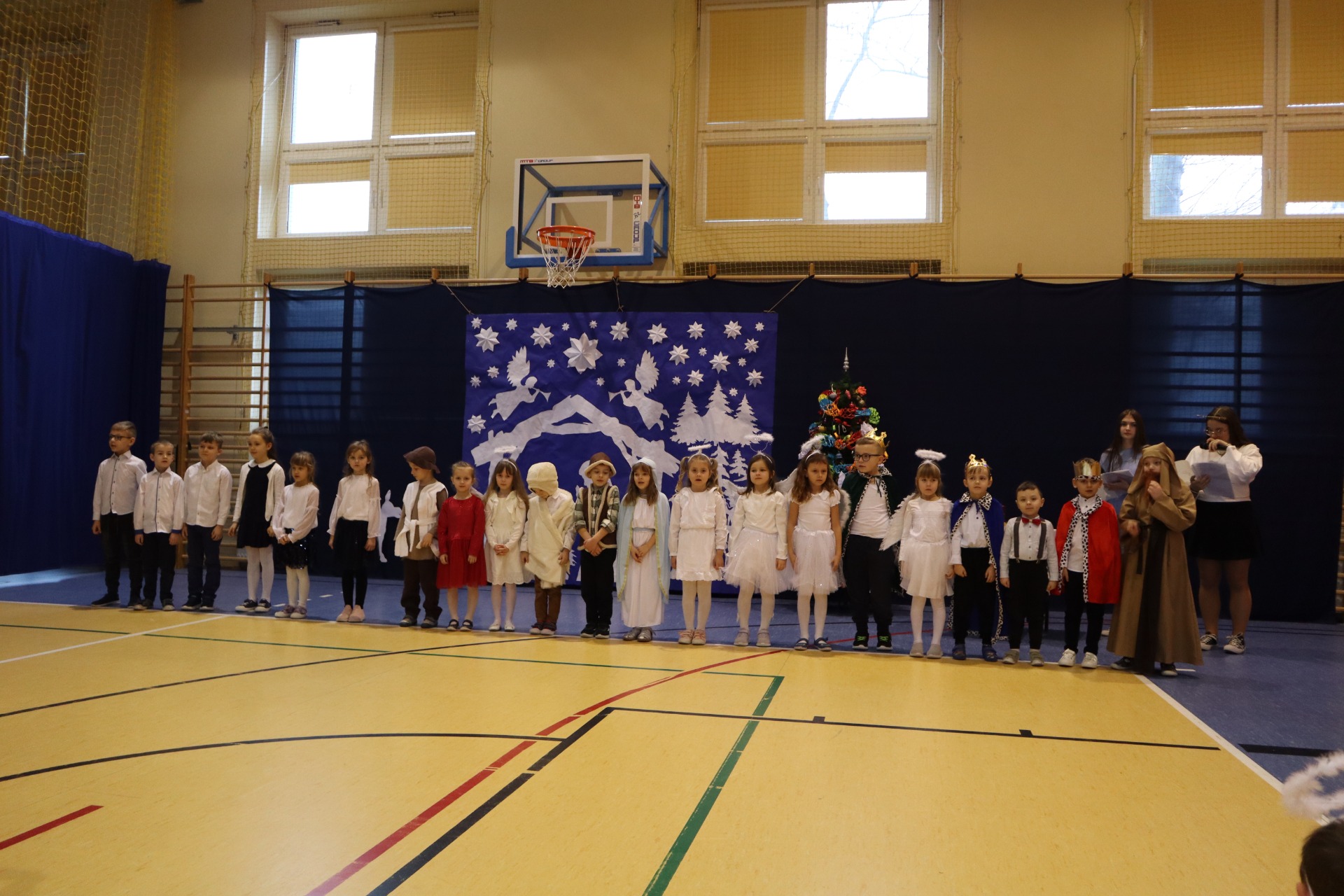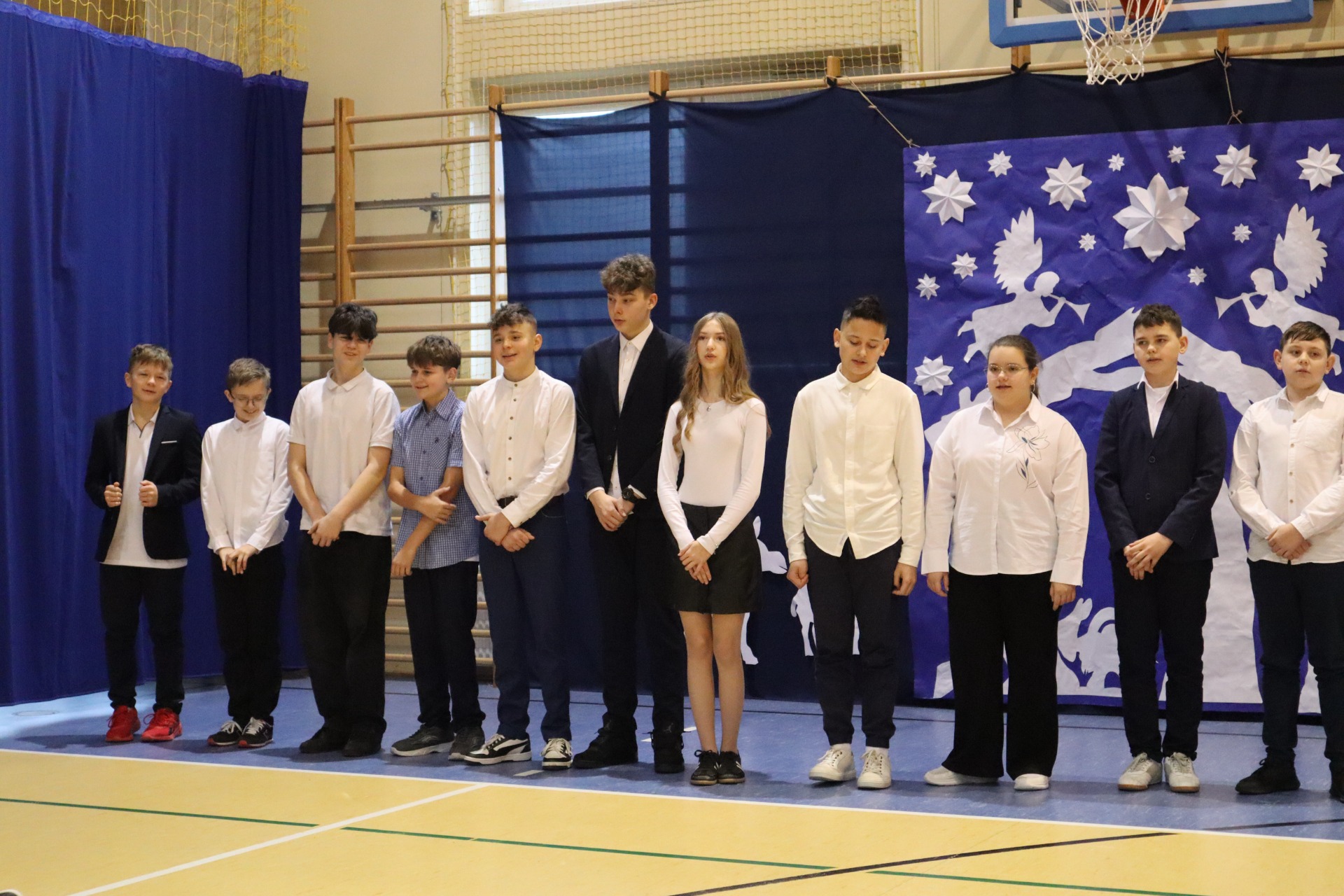 Z okazji madchodzącyhc Świąt Bożego Narodzenia w naszej szkole odbył się wyjątkowy koncert kolęd, który wprowadził wszystkich w świąteczny nastrój. Najmłodszych milusińskich spotkała dodatkowa niespodzianka - odwiedził ich sam Święty Mikołaj, wywołując wiele usmiechów i radości. To był dzień pelen ciepła, muzyki i światecznej atmosfery.
