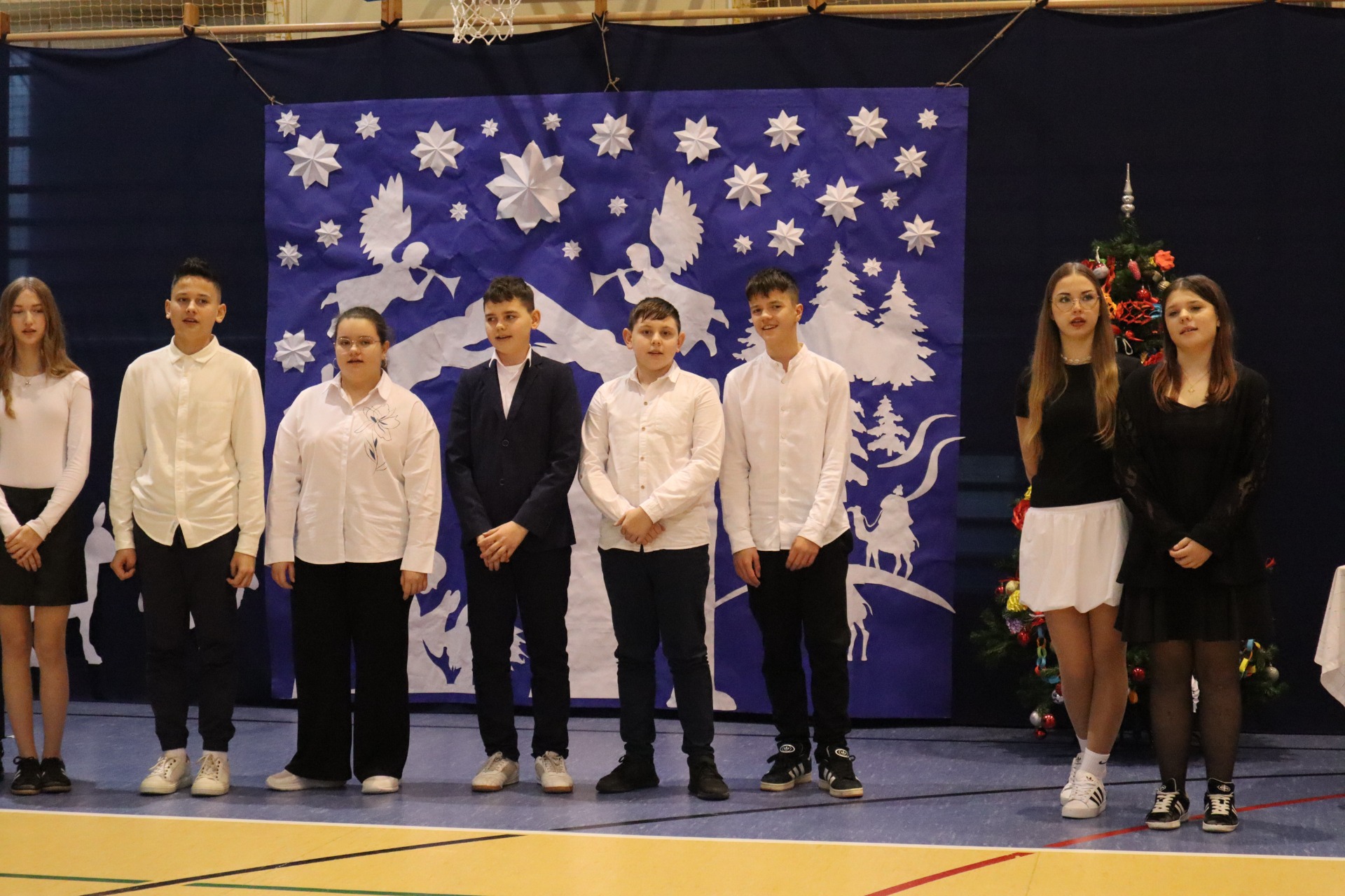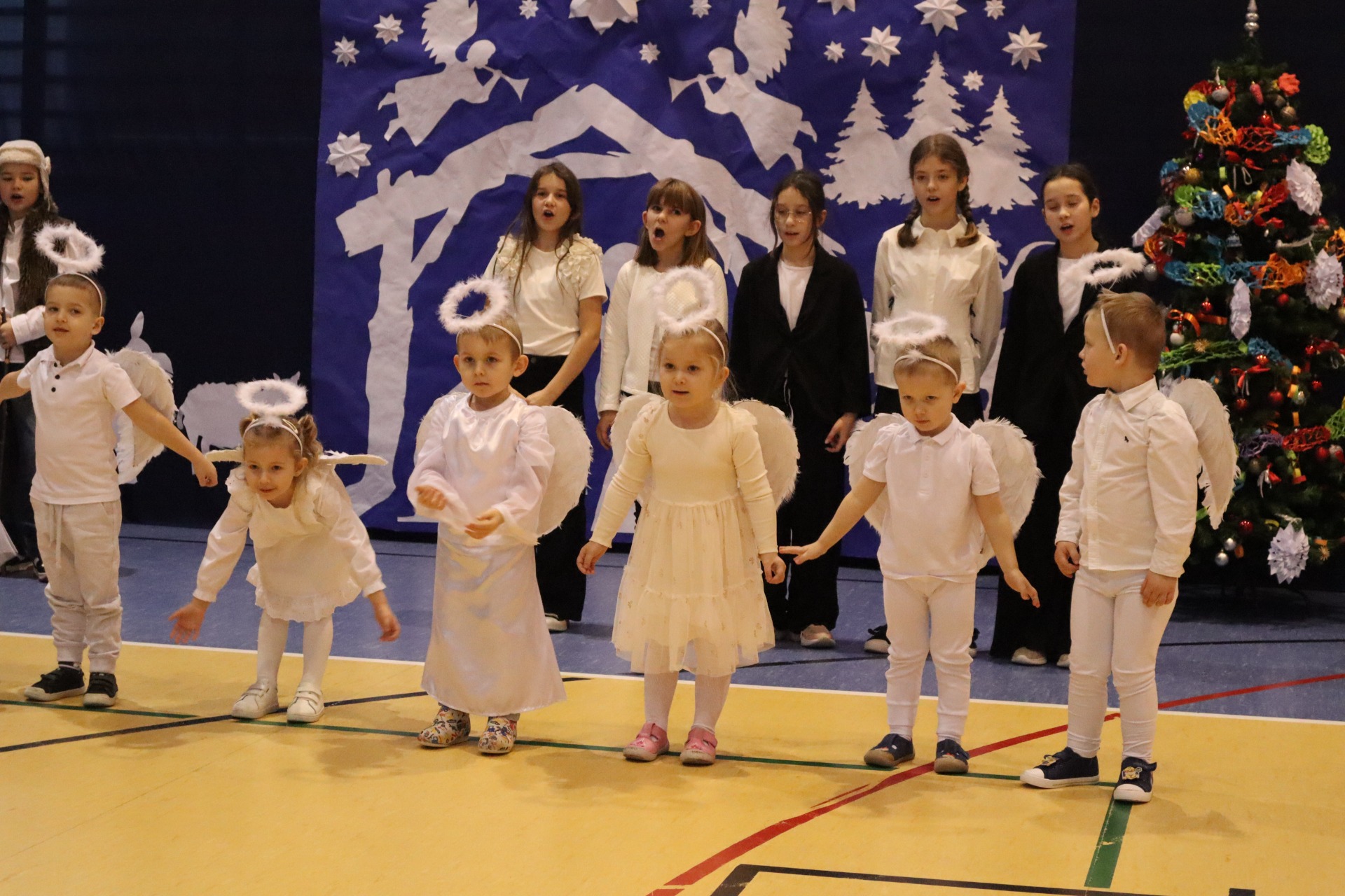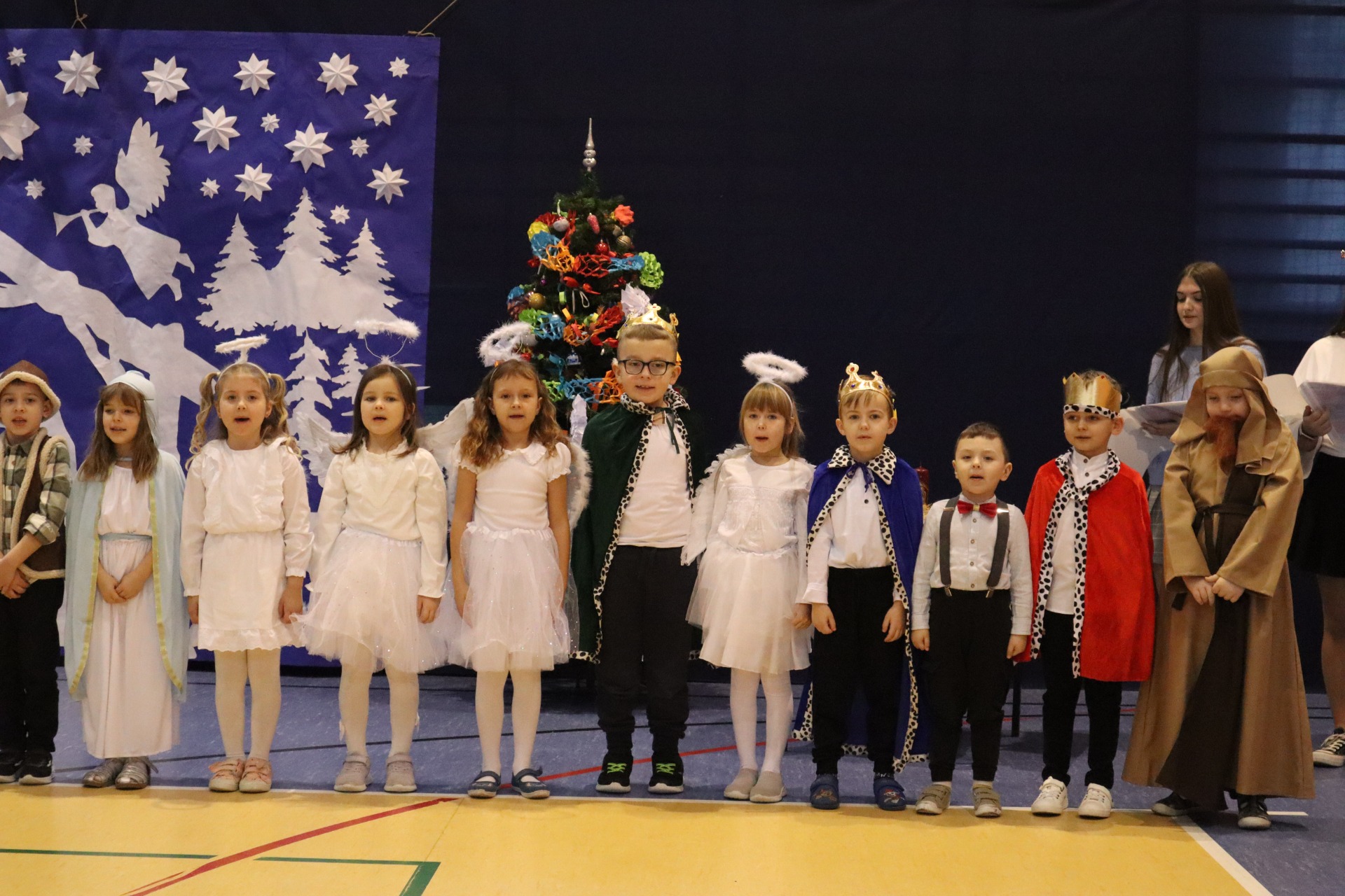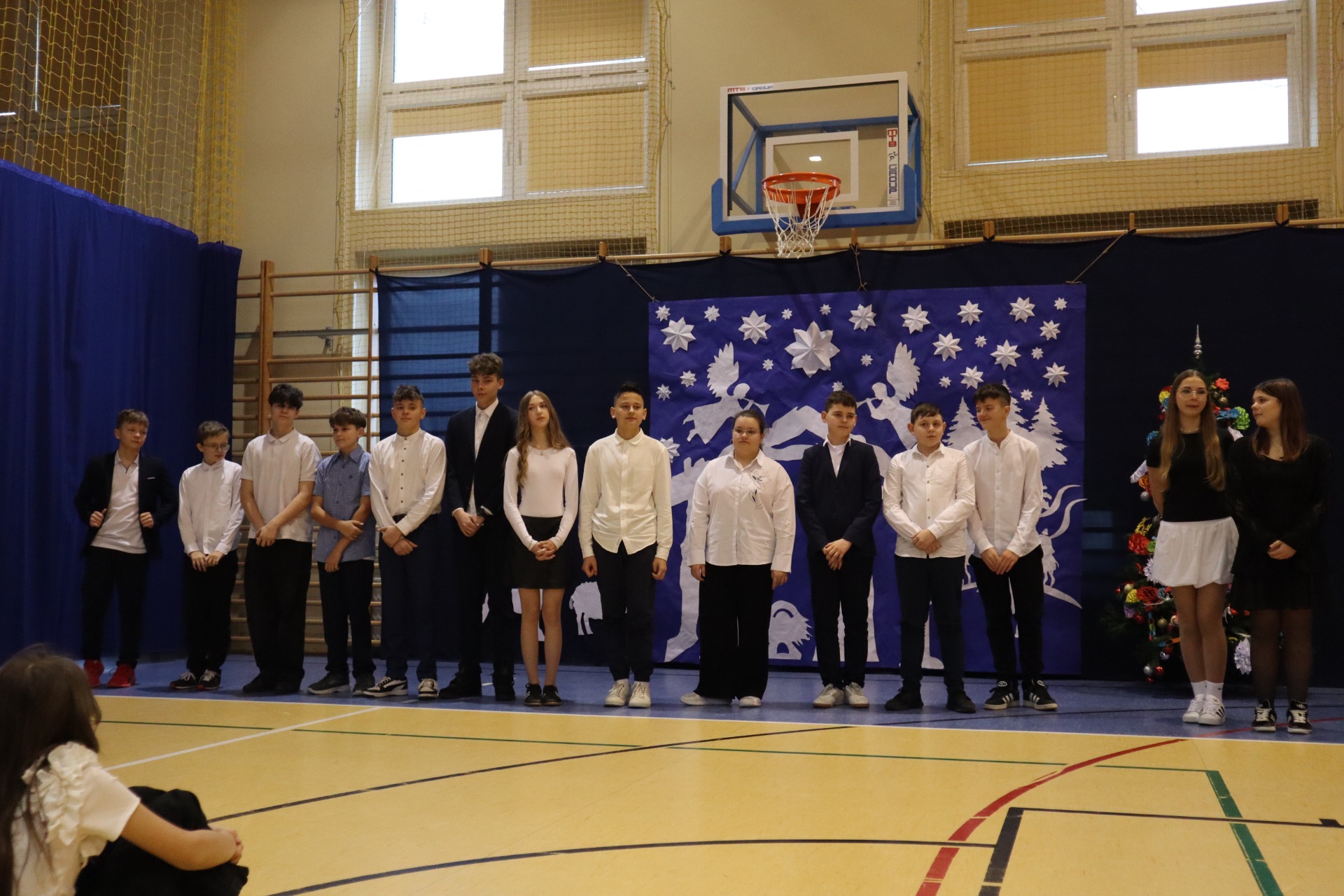 Z okazji madchodzącyhc Świąt Bożego Narodzenia w naszej szkole odbył się wyjątkowy koncert kolęd, który wprowadził wszystkich w świąteczny nastrój. Najmłodszych milusińskich spotkała dodatkowa niespodzianka - odwiedził ich sam Święty Mikołaj, wywołując wiele usmiechów i radości. To był dzień pelen ciepła, muzyki i światecznej atmosfery.